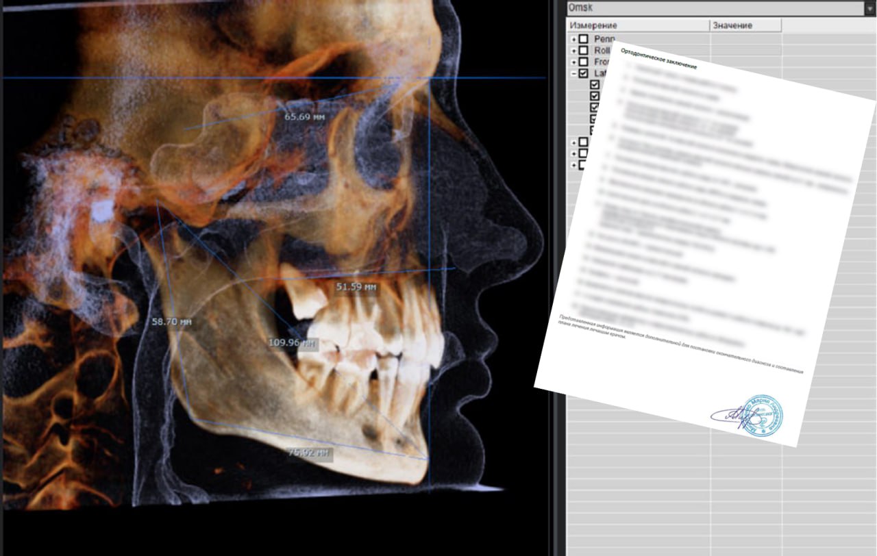 Набор скриншотов и заключение врача-ортодонта + описание ВНЧС + описание всех патологических изменений зубочелюстной системы.
