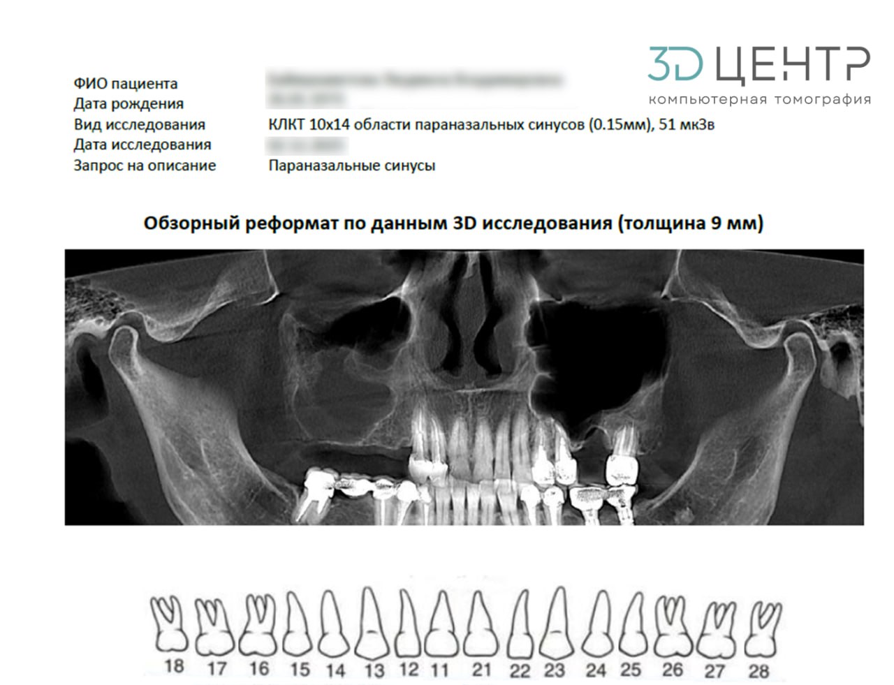 Высокоточное обследование челюстно-лицевой области для детального анализа состояния зубов и окружающих тканей.