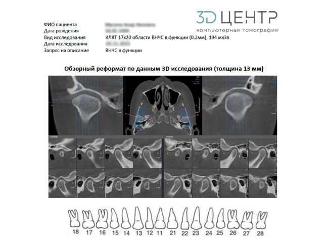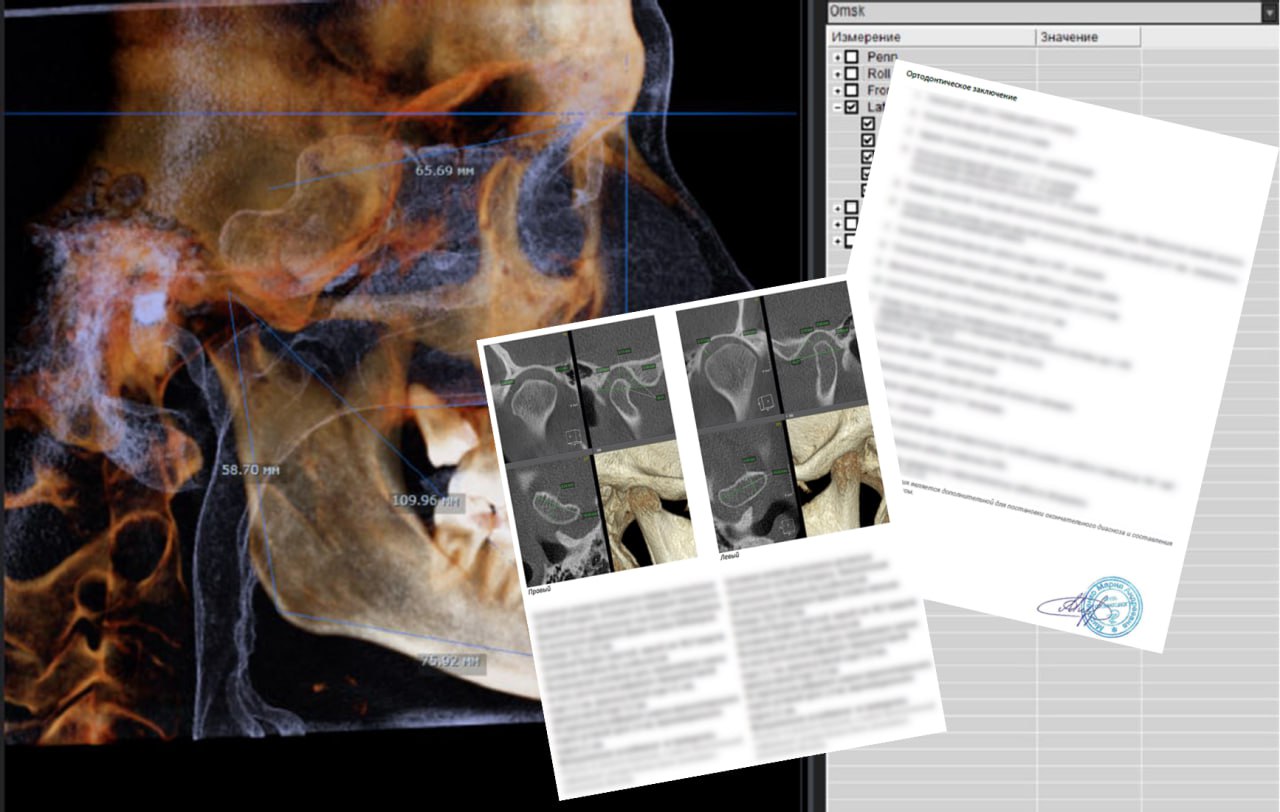 Набор скриншотов и заключение врача-ортодонта + описание ВНЧС.
